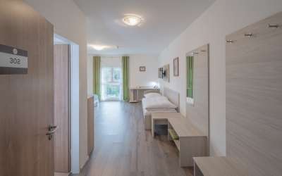 Auf einem großzügigen Grundstück von ca. 1.501 m² bietet das Anwesen insgesamt 43 stilvoll eingerichtete Zimmer mit 101 Betten, die eine ruhige und einladende Atmosphäre versprechen. Jedes Zimmer ist modern eingerichtet und mit hochwertigen Annehmlichkeiten ausgestattet, um den Gästen den Aufenthalt so angenehm wie möglich zu gestalten. Das gesamte Hotel ist barrierefrei errichtet worden