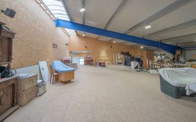 Sie verfügt über ein Satteldach, einen überdachten Lagerplatz und ist mit sechs Sektionaltoren sowie einem Schwerlastboden ausgestattet. Diese Eigenschaften bieten hervorragende Möglichkeiten für Lagerung, Produktion oder andere gewerbliche Aktivitäten.